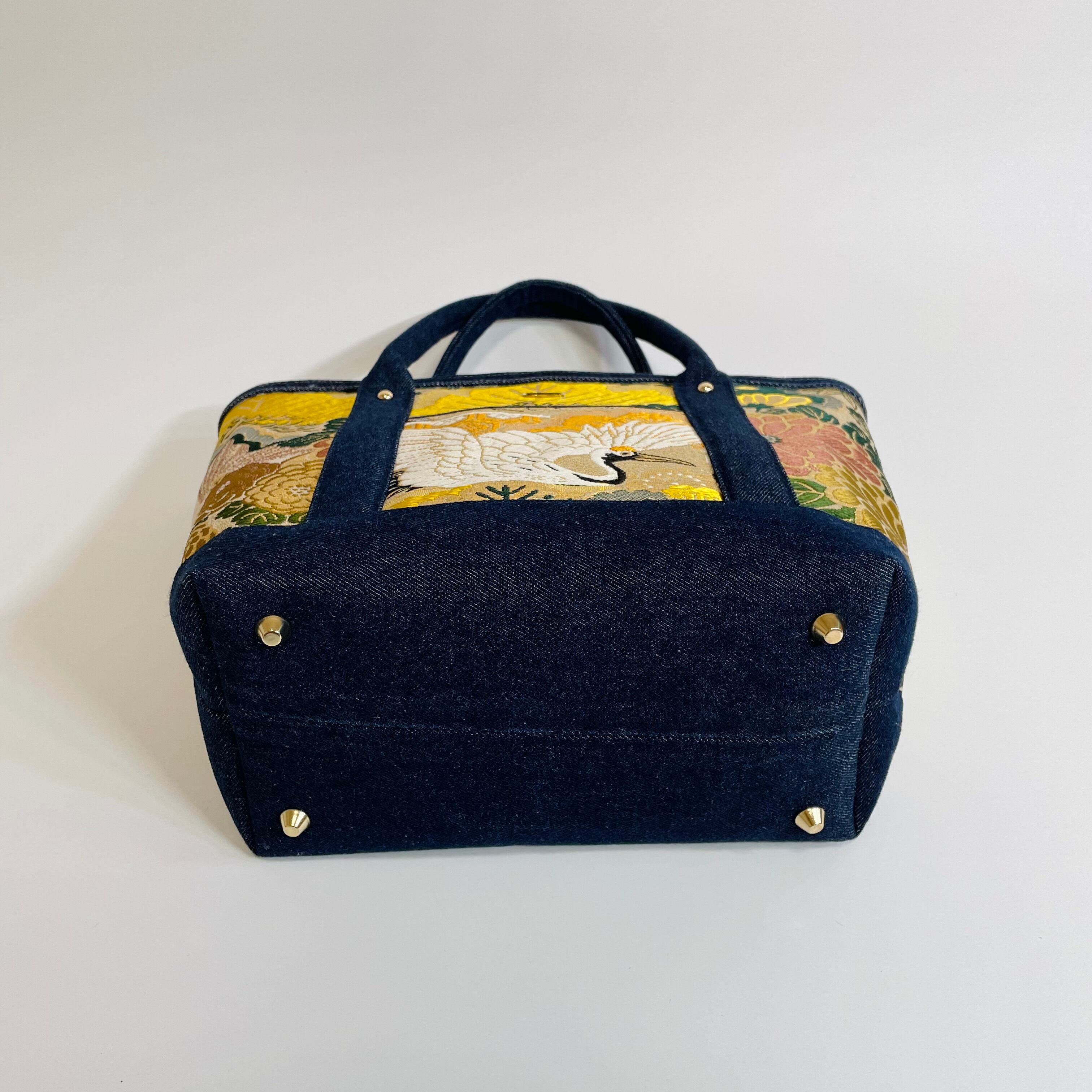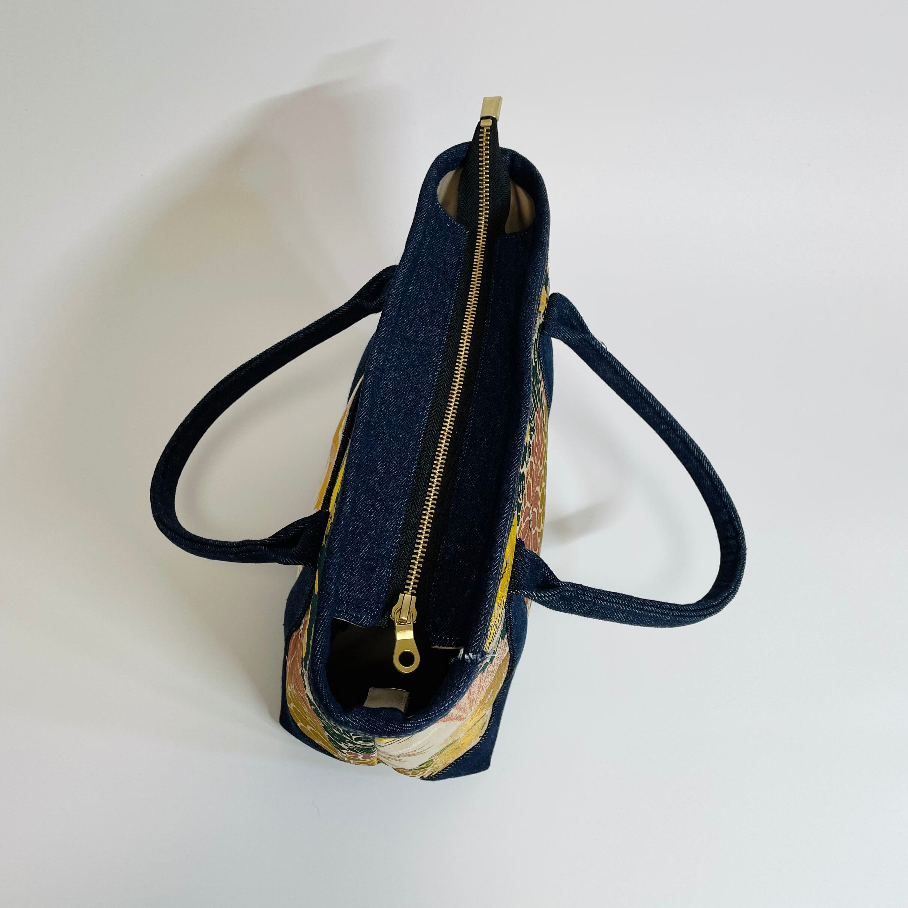 日本の伝統的な着物生地と、使い込まれたデニムを組み合わせた、世界にひとつだけのトートバッグです。