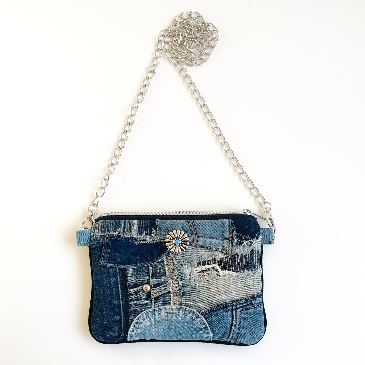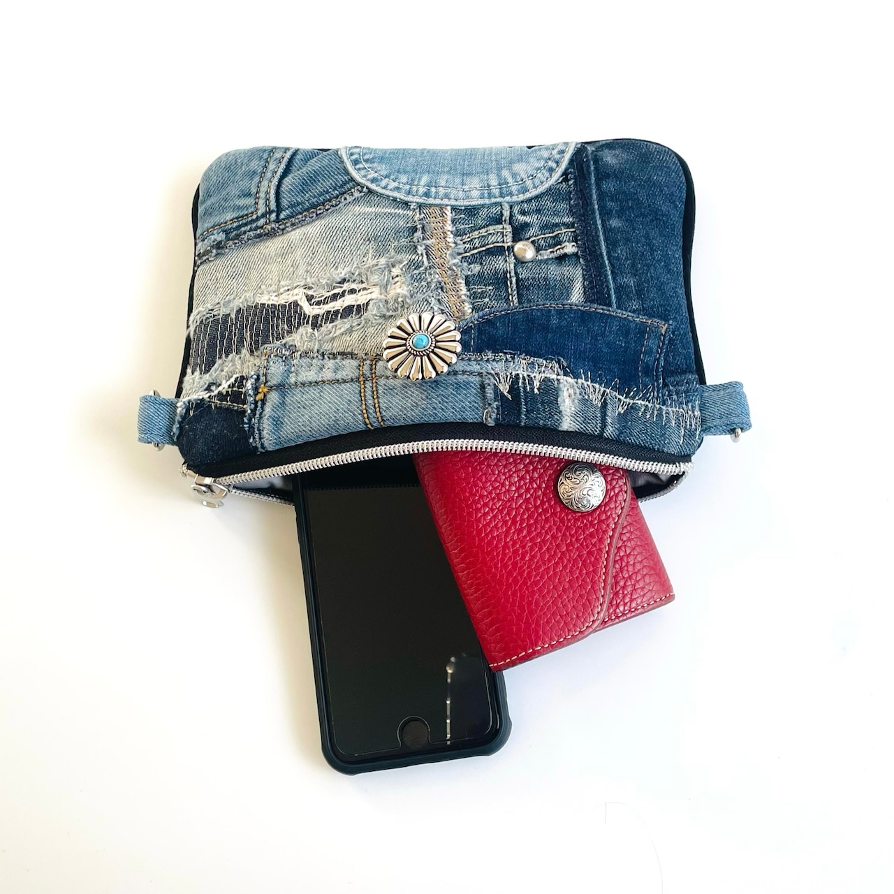 A compact mini bag crafted from carefully combined denim fabrics, creating a rich and expressive design.
