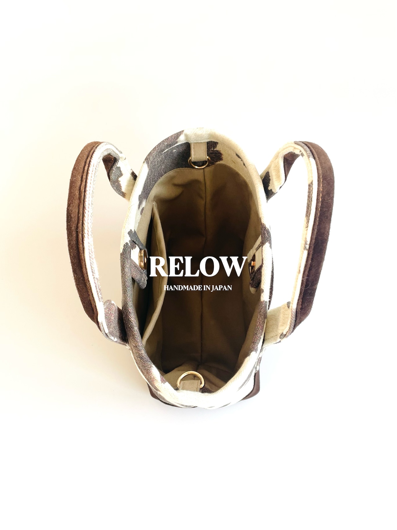縁取りと持ち手にはスエードの本革を使用し、手に取った瞬間に伝わる上質感が魅力です。