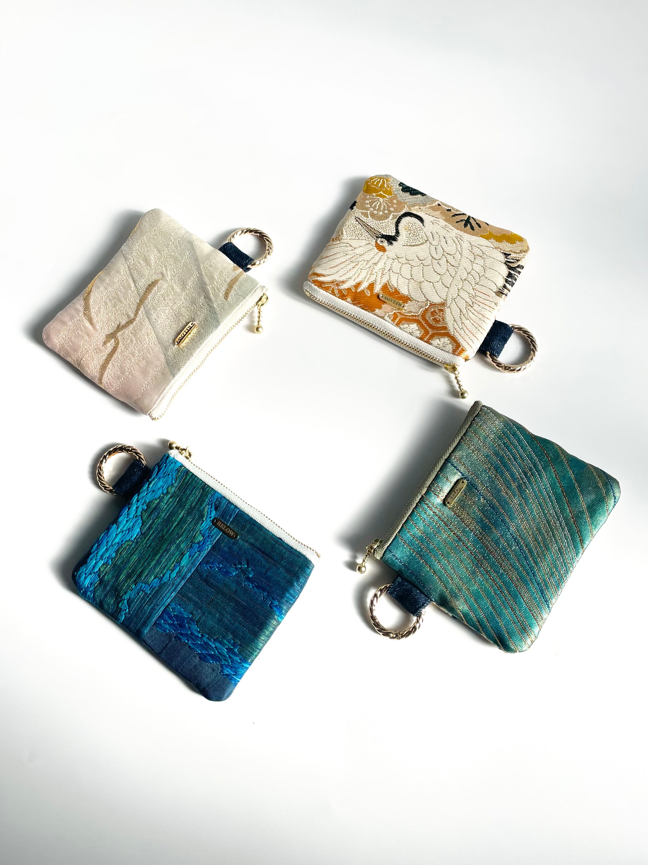 A one-of-a-kind tissue pouch made from vintage kimono obi fabric and denim.